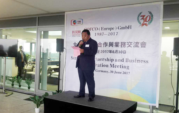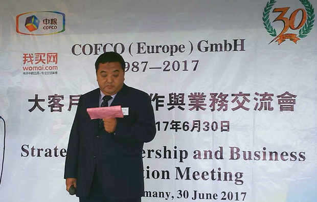 6月30日,公司董事長(zhǎng)楊廣富受邀赴德國(guó)參加中糧(歐洲)有限公司30年慶典活動(dòng)并發(fā)表戰(zhàn)略合作講話。