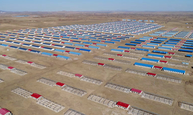 建設(shè)中的鴻安數(shù)字化高檔肉牛養(yǎng)殖示范基地航拍圖