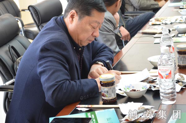 2016年3月25日上午,鴻安集團(tuán)2016深加工產(chǎn)品招商會(huì)在公司三樓會(huì)議室勝利召開(kāi)??偨?jīng)理李國(guó)義、總經(jīng)理助理王星魁、營(yíng)銷管理部經(jīng)理肖淇木等有關(guān)領(lǐng)導(dǎo)以及青島美食樂(lè)商貿(mào)有限公司、濟(jì)南樂(lè)羊羊、聊城龍威食品銷售中心、東營(yíng)雙佳公司、臨沂東瀚商貿(mào)、威海潤(rùn)澤食品有限公司、德州的等來(lái)自全省14個(gè)客商應(yīng)邀參加??偨?jīng)理助理王星魁主持會(huì)議。招商會(huì)上,商家對(duì)我公司的鴻安牛肉“洋嘉醬”牌香辣牛肉醬、香辣牛肝醬、風(fēng)味牛肉、醬牛肉、牛扒等牛肉深加工產(chǎn)品進(jìn)行了品鑒,會(huì)上,各地客商暢所欲言,對(duì)公司的產(chǎn)品提出了很多寶貴的意見(jiàn)。