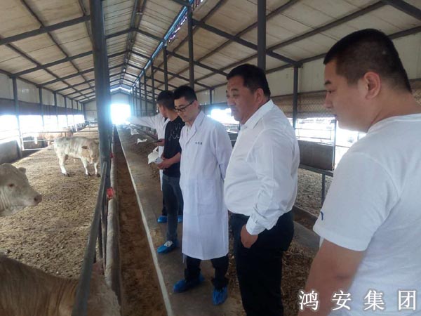 2016年5月1日,草原宏達(dá)有限公司董事長(zhǎng)樊偉龍?jiān)诠径麻L(zhǎng)楊廣富及其他領(lǐng)導(dǎo)陪同下到鴻安科技肉牛養(yǎng)殖有限公司養(yǎng)牛場(chǎng)參觀考察。